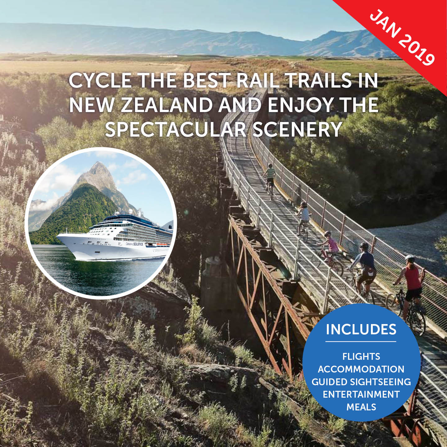 This afternoon board the Celebrity Solstice on this fantastic Cycle and Cruise journey of New Zealand. Be up on deck as we cruise Sydney Harbour and out through Sydney Heads.